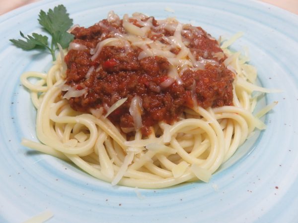 Ingrediente: spaghete, carne vită, morcov, ţelină, ceapă, ardei, pastă de tomate, brânză dură, condimente (350g)